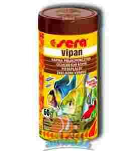 Sera vipan to idealny pokarm w akwariach wielogatunkowych. Jego zbilansowana kompozycja spełnia wymagania różnych gatunków ryb a staranny proces przetwarzania gwarantuje zachowanie wartościowych składników odżywczych, jak kwasy tłuszczowe omega, witaminy i minerały. Płatki pokarmu nie rozpadają się, co ogranicza zanieczyszczenie wody. Jednocześnie, dzięki specjalnemu procesowi wytwarzania, są niezwykle delikatne i chętnie zjadane przez ryby. Dostępny w płatkach standardowych i dużych.