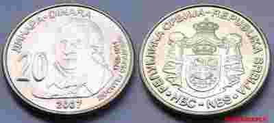 SERBIA 20 DINARA 2007 DOSITEJ OBRADOVIC MENNICZA