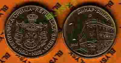 SERBIA /KM-39/ 1 DINAR 2005 r.nowy herb Stan I/-I
