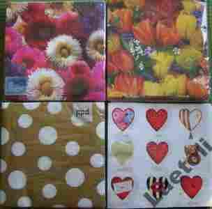 Serwetki: kwiaty, kropy, serca. 1 serwetka 33 gr!