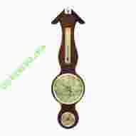 Bardzo estetycznie wykonany barometr/higrometr /termometr w drewnianej obudowie ze złotymi zegarami..