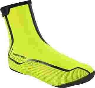 Przeciwdeszczowe ochraniacze rowerowe Shimano przeznaczone do użytku z butami szosowymi. Sugerowany zakres temperatur to od +10 do 0 stopni. Idealnie nadają się na jesienną deszczową aurę. Wykonane z z elastycznej, funkcjonalnej lycry , z nieprzemakalną powłoką PU i chropowatą stroną wewnętrzną z delikatnego polaru . Zapewniają ochronę przed wiatrem i wodą. Wodoszczelnie zespojone szwy. Podeszwa z otworami na bloki i obcas. Elementy odblaskowe zwiększają bezpieczeństwo. Ochraniacze z serii HI VIZ - jaskrawe, doskonale widoczne kolory poprawiające bezpieczeństwo.