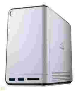 Specyfikacja techniczna obejmuje również porty Gigabit Ethernet i USB 2.0 umieszczone z tyłu urządzenia, a także dwa USB 3.0 i czytnik kart pamięci, które znajdziemy na przedniej ściance. Producent przekonuje, że jego nowy NAS w trybie czuwania pobiera zaledwie 9,6W mocy, a pod obciążeniem zużycie wzrasta do 19W. Opisywany model jest w stanie zapewnić transfery na poziomie 100MB/s w przypadku odczytu i 70MB/s dla zapisu danych, a zasilany jest przez zewnętrzny zasilacz o mocy 65W.