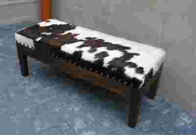 Siedzisko jest masywnym i ciężkim mebelkiem. Do jego wykonania użyto stare, grube 4-7 cm deski z egzotycznych, bardzo twardych drzew (drewno potrzebne do wyrobu tych mebli pozyskiwane jest z rozbiórek starych 200 - 300 letnich domów). Największego uroku dodaje przedmiotowi obicie z efektownej, dobrze wyprawionej cielęcej skóry. Sierść biało-brązowa z nielicznymi czarnymi przebarwieniami, błyszcząca, miła w dotyku, nie wyciera się. Skóra przytwierdzona do podstawy dużymi metalowymi postarzanymi ćwiekami. Siedzisko na sprężynach.