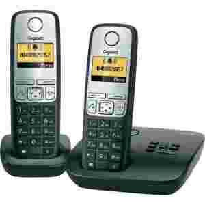 Telefon Gigaset A400, bezprzewodowy, sekretarka, 80 wpisów, 20 h, czarny, 2 słuchawki.