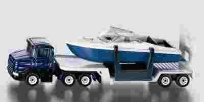 Zestaw zawiera metalowy model ciągnika siodłowego platformę i łódź motorową z bogatej kolekcji firmy Siku. Model wykonany z metalu z plastikowymi elementami. Wykonany z wielką starannością i dbałością o najdrobniejsze szczegóły wykończenia. Wymiary 163x36x48mm