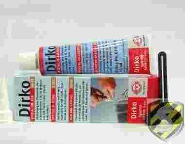 Aby uszczelnić element masą Dirko należy go jedynie oczyścić i odtłuścić. Po naniesieniu silikonu, czas tworzenia warstwy uszczelniającej wynosi od około 5 do 10 minut. Przy uszczelnianiu od zewnątrz, bez demontażu elementów, przed uruchomienie, odczekać przynajmniej 30 min. Zastosowanie uniwersalne w samochodach, ciężarówkach, motocyklach, pojazdach rolniczych, wodnych, maszynach, agregatach.