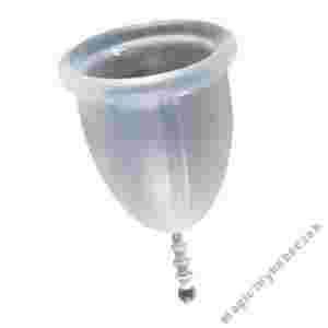 - dostarczany z woreczkiem bawełnianym lub silikonowym (silikonowy może być dezynfekowany w razie potrzeby tak jak kubeczek i ma duże otwory zapewniające dostęp powietrza)