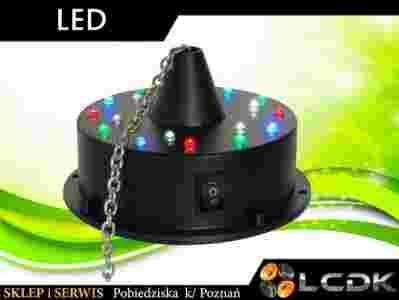 Silnik do kuli lustrzanej z podświetlaniem LED w 4 kolorach Red Green Blue White. Urządzenie posiada maksymalny udźwig do 2 kg oraz zasilanie bateryjne dzięki czemu jest rozwiązaniem w miejscach gdzie nie mamy dostępu do gniazdka 230V.
