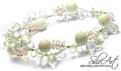 SilvArt - BRANSOLETKA SREBRNA ! koral biały róż