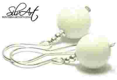 SilvArt - KOLCZYKI SREBRNE ! koral biały 10mm