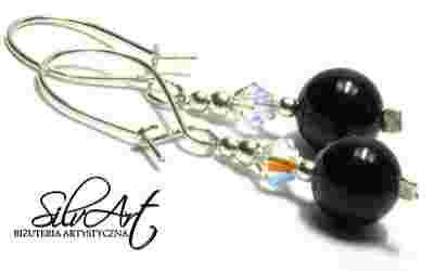 SilvArt - KOLCZYKI SREBRNE !! Swarovski 5328 onyks