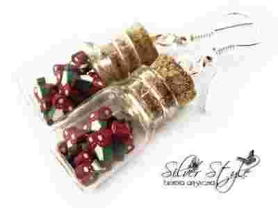 wypełnionych myszkami z masy fimo oraz zawieszonych na biglach w kolorze srebrnym.