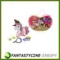Flokowany, gumowy konik zapakowany w praktyczną, plastikową torbę, ze zdejmowanymi, gumowymi włosami, pod którymi jest grzywa do czesania, w zestawie z wieloma akcesoriami do pielęgnacji włosów.Zabawka przeznaczona:dla dzieci w wieku od 3 lat.