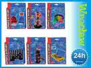Do wyboru jedna z 6 wspaniałych gier podróżnych. Cena obejmuje 1 sztukę. Możliwość zakupu całego dispalyu, w którym znajduje się 60 sztuk ( po 10 sztuk z każdego tytułu).Dostępne gry:1. Małpie przyjęcie (Monkey Party),2. Tajny kod (Secret code),3. 4 w rzędzie L ( 4 in a row L),4. Bitwa morska (Sea battle) potocznie zwana Grą w Statki,5. Wieża równowaga (Balance-tower),6. Gra w żabki (Frog game).Gra przeznaczona są dla 2 do 4 graczy w wieku od 5 lat. Ze względu na niewielkie rozmiary opakowań, świetnie nadaje się do urozmaicenia czasu dzieciom zwłaszcza w podróży.Wewnątrz opakowań znajduje się instrukcja w języku polskim.