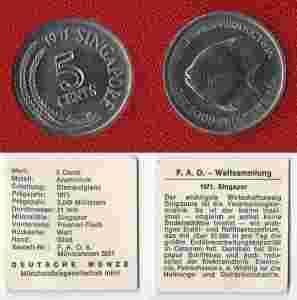 SINGAPUR 1971 5 CENTS FAO