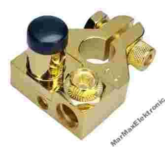 Pozłacana klema o biegunie dodatnim z męską obracaną nakrętką, podłączenie: 2 x 8 AWG