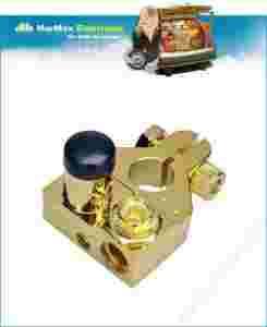 Pozłacana klema o biegunie dodatnim z męską obracaną nakrętką, podłączenie: 2 x 8 AWG