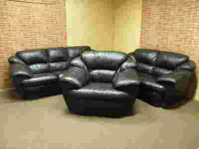 SKÓRA 3+2+1 CZARNA PUFIASTA SOFITALIA WYPRZEDAŻ