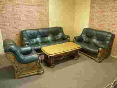 SKÓRA 3 + 2 + 1 NA STELAŻU DĘBOWYM ZIELONA EKSTRA