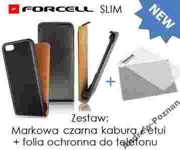 Nowy zestaw - markowe skórzane etui / futerał / kabura pionowa Forcell Slim + dedykowana dotykowa folia ochronna do telefonu: