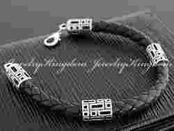 SKÓRZANA MĘSKA BRANSOLETA + SREBRNE WSTAWKI