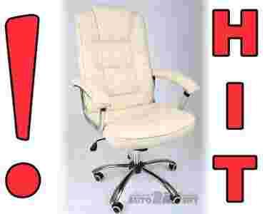 Skórzany beżowy fotel biurowy BOSS z CHROMEM FV !