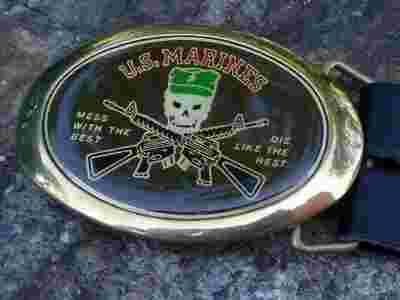 SKÓRZANY PAS Z OZDOBNĄ KLAMRĄ US USMC SKÓRA