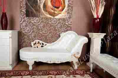 Przedmiotem aukcji jest nowy drewniany oraz skórzany szezlong"H005" w kolorze białym o wymiarach: