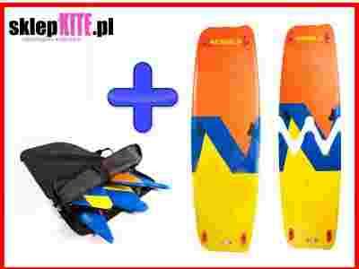 Wymiary deski po złożeniu: 130x39 cm (72 x 39 cm), 134x41 cm (74X41 cm), 138x43 cm (76 x 43 cm). W komplecie specjalny pokrowiec do deski. Deska sprzedawana jest w zestawie z rączką, padami IFS KISS System (do wyboru kolory: black i orange) oraz dwoma kompletami stateczników KISS System: 55mm i 40 mm.