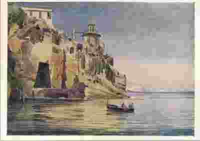 SKALISTY BRZEG MORSKI akwarela SZKOŁA WŁOSKA