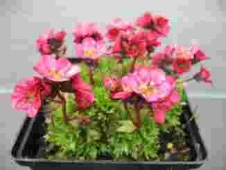 Saxifraga arendsii – Skalnica Arendsa 'Harder Zwerg' Jest to wieloletnia, dobrze znana roślina skalna. Mieszańce Arendsa charakteryzują się miękkimi liśćmi kształtu lancetowatego o głęboko wcinanych brzegach. Wytwarzają gęste i niskie (do 10 cm) rozety. W trakcie kwitnienia (V) pojawiają się kwiaty na pojedynczych łodyżkach zebrane w grona. Odmiana 'Harder Zwerg' cechuje się tym, że kwiaty osadzone są na niziutkich łodyżkach. Kolor kwiatu jak na zdjęciu. Dobrze rośnie w każdej przepuszczalnej glebie i w pełnym słońcu. Jest odporna na suszę ze względu na to, że pod gęsto ulistnionymi rozetami wilgoć utrzymuje się długo. Polecany do ogrodu skalnego, na murki skalne i do pojemników na tarasach, balkonach itp. Liście utrzymują się na roślinie przez cały rok. Zimowanie dobre. Nadmierna wilgoć podłoża źle wpływa na trwałość tej rośliny.