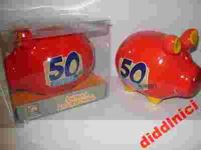 Skarbonka świnka 50 LAT kukartka + OPAKOWANIE