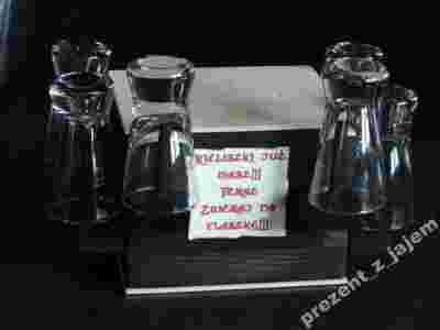Służy jako stojak na 6 kieliszków, które dołączone są do zestawu.