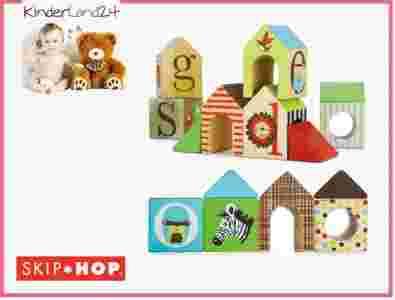 SKIP HOP ABC … D jak DOMEK – to zestaw czternastu drewnianych klocków, z których można zbudować najróżniejsze w kształcie domki.