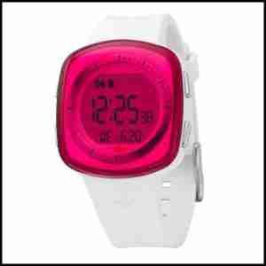Jeśli szukasz sportowego zegarka w nowoczesnym stylu, to jest to zegarek dla Ciebie. Swoim wizerunkiem nawiązuje do kolekcji FUTURYSTYCZNYCH czasomierzy firmy ADIDAS. Cyfrowy wyświetlacz. Czarne indeksy na różowym, kontrastującym cyferblacie sprawiają, że zegarek jest bardzo czytelny. Biały kolor paska i kontrastujące szkiełko z pewnością wyróżnią Cię wśród znajomych. Nikt nie przejdzie obojętnie obok Ciebie. Precyzyjny mechanizm oraz zaawansowane funkcje zegarka: datownik, stoper, budzik, chronograf, czas dwustrefowy, podświetlanie i inne. Prawie w całości wykonany z wysokiej jakości tworzywa sztucznego. Dzięki temu jest lekki, wytrzymały, miły w dotyku i przede wszystkim nie uczula. Na pewno zachwyci kobiety jak i mężczyzn ze sportowym zacięciem - UNISEX.