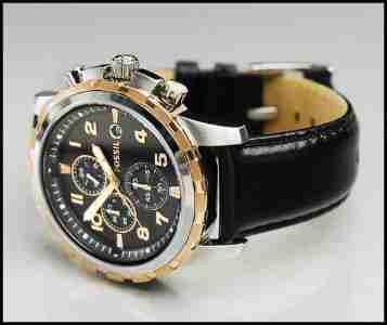 Wspaniałe połączenie klasycznego wizerunku z cechami sportowego zegarka. Nowa kolekcja amerykańskiej firmy FOSSIL. Trzy wskazówkowy mechanizm kwarcowy. Analogowy - wyjmowane pokrętło/koronka. Wskazówki lśniące w ciemności. Czarny pasek wykonany z mięciutkiej i gładkiej skórki. Koperta wykonana ze stali szlachetnej w kolorze srebrnym. Pierścień zewnętrzny w jonowanej stali koloru miedzianego. Tarcza dwuwarstwowa w kolorze czarnym mieści w sobie trzy mniejsze tarcze chronografu. Bardzo funkcjonalny datownik (dzień miesiąca) na godzinie trzeciej. Firma FOSSIL jest wiodącym producentem modnych zegarków na całym świecie. Mając go na nadgarstku możesz czuć się wyróżniony. Idealny na prezent. Zapakowany w oryginalną, metalową puszkę FOSSIL.