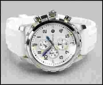 Wspaniałe połączenie klasycznego wizerunku z cechami sportowego zegarka. Nowa kolekcja amerykańskiej firmy FOSSIL. Trzy wskazówkowy mechanizm kwarcowy. Analogowy - wyjmowane pokrętło/koronka. Wskazówki lśniące w ciemności. Biały pasek wykonany z mięciutkiego i bardzo wytrzymałego tworzywa sztucznego. Dzięki temu zegarek jest lekki, odporny na zarysowania i nie uczula skóry. Koperta wykonana ze stali szlachetnej w kolorze srebrnym. Pierścień zewnętrzny zdobiony w unikatowy sposób nadaje wyrazistego akcentu. Tarcza dwuwarstwowa w odcieniach koloru srebrnego mieści w sobie trzy mniejsze tarcze chronografu. Bardzo funkcjonalny datownik (dzień miesiąca) na godzinie trzeciej. Firma FOSSIL jest wiodącym producentem modnych zegarków na całym świecie. Mając go na nadgarstku możesz czuć się wyróżniony. Idealny na prezent. Zapakowany w oryginalną, metalową puszkę FOSSIL.