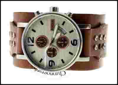 Nowoczesne wzornictwo z klasycznym wizerunkiem, to cechy amerykańskiej firmy FOSSIL. Rzucający się w oczy zegarek z precyzyjnym chronografem (trzy małe tarcze chronografu). Trzy wskazówkowy mechanizm kwarcowy. Wskazówki (minuta, godzina) lśniące w ciemności. Czarny sekundnik. Brązowy, szeroki, unikatowy pasek z prawdziwej skóry. Pasek przeszyty jest grubymi nićmi oraz przyozdobiony charakterystycznymi ćwiekami. Koperta srebrna ze stali szlachetnej (matowa). Cyferblat zawiera w sobie datownik umiejscowiony na godzinie czwartej (4:00). Firma FOSSIL jest wiodącym producentem modnych zegarków na całym świecie. Mając go na nadgarstku możesz czuć się wyróżniony. Idealny na prezent. Zapakowany w oryginalną, metalową puszkę FOSSIL. Bardzo efektowny. Wodoszczelny.