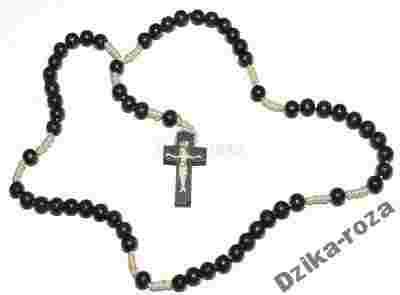 Prosty różaniec z drewnianych paciorków w czarnym kolorze,