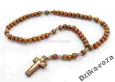 SKROMNY DREWNIANY RÓŻANIEC NA SZNURKU