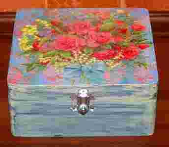 skrupulatnie ręcznie zdobiona metodą decoupage, niepowtarzalna i nietuzinkowa