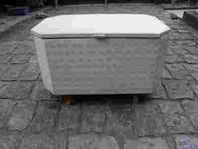 Skrzynia śliczna, dobrze zachowana jak na swoje lata, obita tworzywem sztucznym, łatwym do mycia-