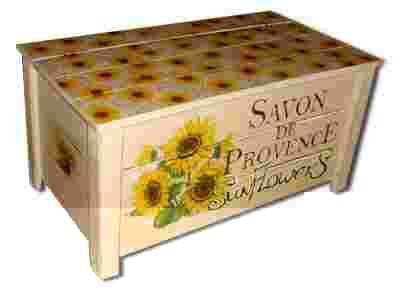 Skrzynia wiejska, prowansalska,SŁONECZNIKI- drewno