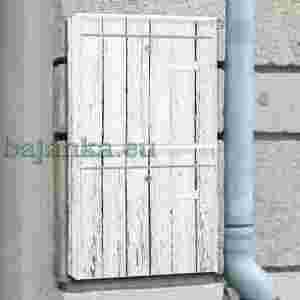 Materiał: ocynkowana blacha stalowa, proszkowana na biało, powlekana folią dekoracyjną, chroniącą przed UV i pogodą