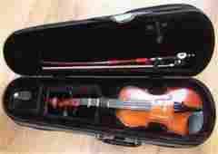 top świerkowy gryf, boki i spód klonowe stroiki i podstrunnica hebanowe w komplecie futerał i smyczek