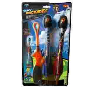 Składa się z 2 kolorowych i mieniących rakiet oraz wyrzutni.