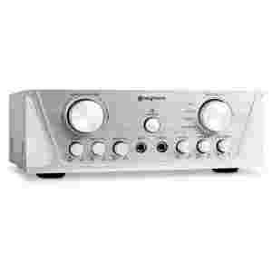Posiadajac 4 wejscia cinch/RCA line, urzadzenie oferuje szeroki zakres podlaczen do innych sprzetów Hi-Fi czy komponentów kina domowego. Wskazówka: dwa wejscia mikrofonowe umozliwiaja równoczesne uzytkowaniae urzadzenia z dwoma zródlami dzwieku: np. wokal i mowa podczas imprez karaoke.