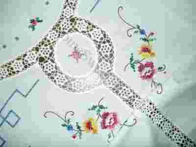Bawełniany ,snieżno-biały obrus z haftem.