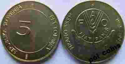Slowenia 5 tolarjev 1995 -50 rocznica F.A.O - UNC